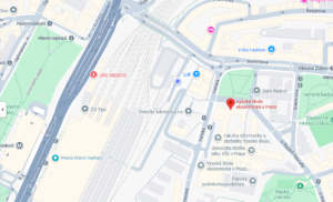 - METRO C (red line): Stop “Hlavní nádraží” (which is the main train station) and then by walk—use the corridor from the 7th platform of the station which leads directly to the Winston Churchill Square (7-8 minute walk from the metro platform)