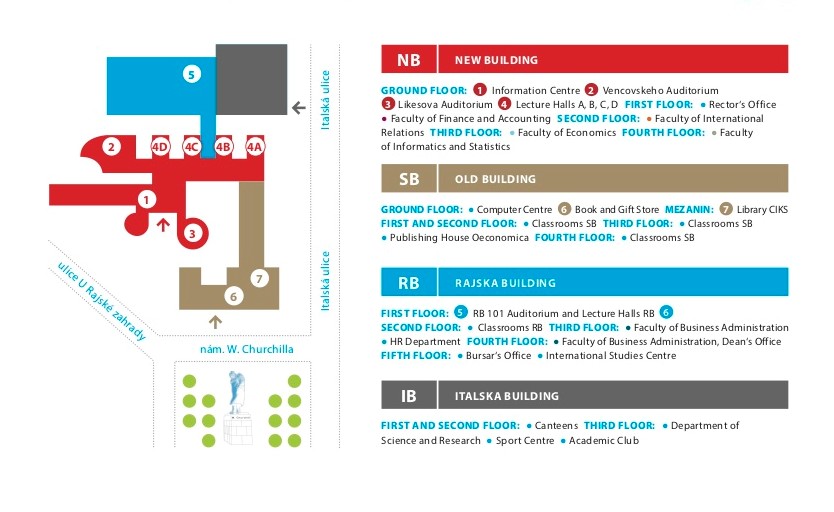 The entire scientific programme will take place in the main campus of Prague University of Economics and Business (Vysoká škola ekonomická v Praze)
